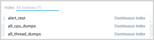 • Index. Type in any Partitions you want to run the query against. When you click in the text area a list of available options is provided. Click an option to automatically fill in the value in the text area. You can continue to add additional Partitions if desired.