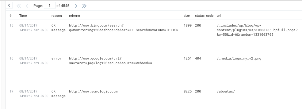 | parse "GET * HTTP/1.1\" * * \"*\"" as url, status_code, size, referrer