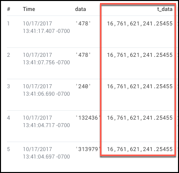 Note that the t_data value of 16,761,621,241.25455 is the sum of the data field in all rows, many of which are not visible here.