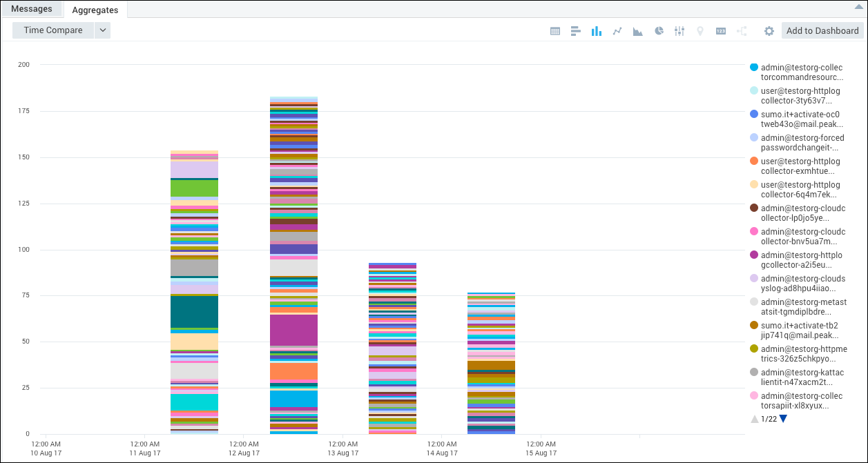 Try changing the Stacking setting (under Change Properties) to Normal to see how graphs are affected by this option. For more information, see Chart Search Results.