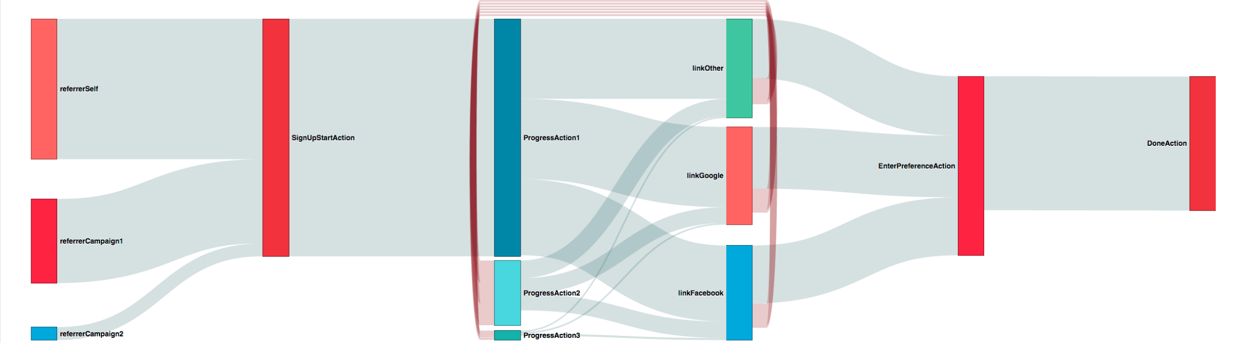 The Sankey chart works with the transaction operator. When constructing your query, you will define the edges of the chart's lines; Sumo Logic sorts each transaction type into the correct flow line using the states defined in your query.