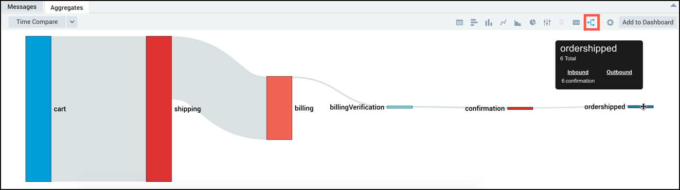 When used with ordered data, you can monitor the transition between two distinct states, allowing you to build a Flow Diagram to visually represent the transitions a transaction goes through, and the number of transactions between transitions. On unordered data, you can use the transaction operator to build a table of results.